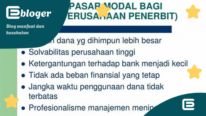 Pasar modal menawarkan berbagai manfaat bagi perusahaan yang menerbitkan efek (emiten), antara lain untuk memperoleh dana segar, meningkatkan likuiditas saham, membangun citra positif, memperluas basis investor, meningkatkan transparansi dan akuntabilitas, serta memperoleh pendanaan yang lebih efisien.